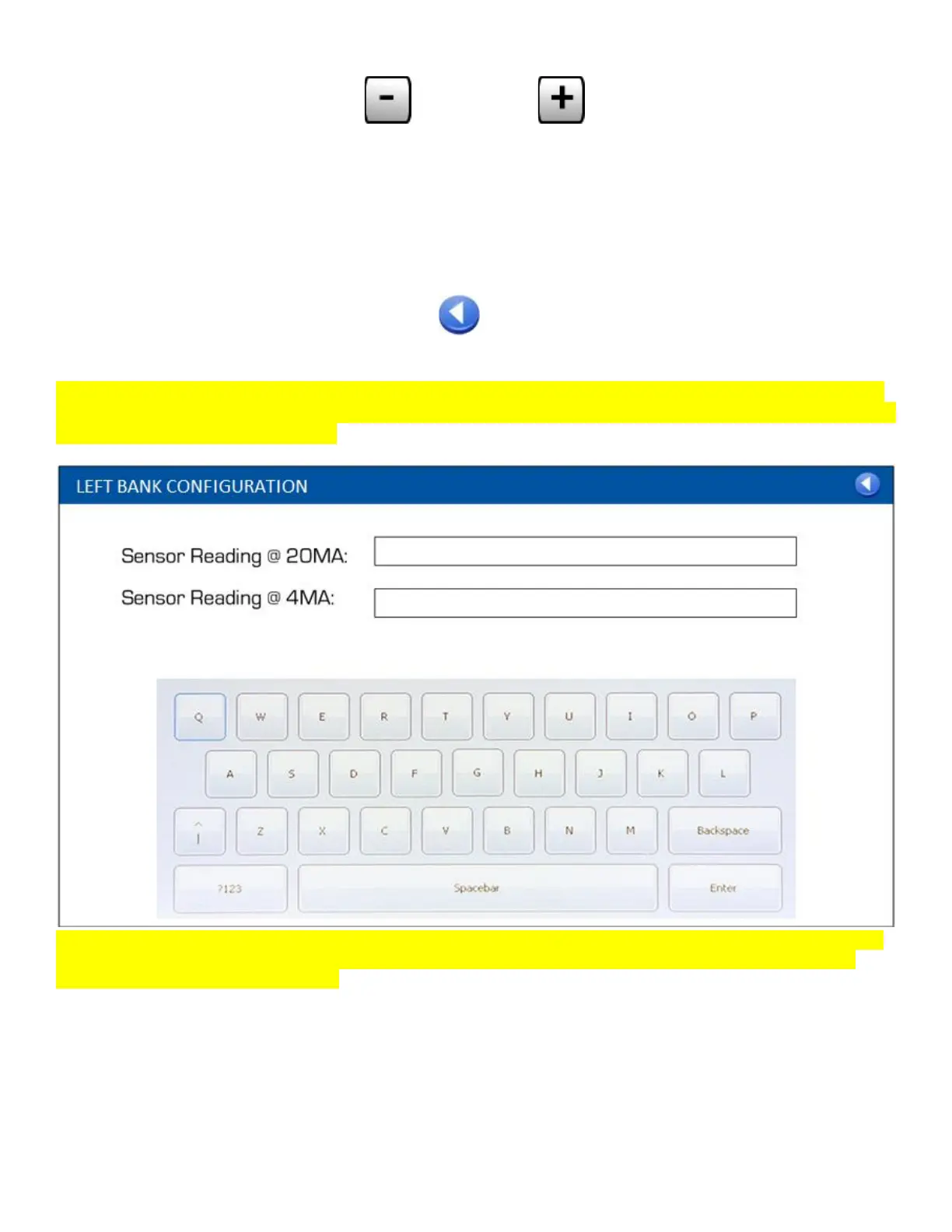 If the touch is detected at any of the edit box (i.e.Sensor reading @ 20 mA: or at Sensor reading @ 4 mA) then the new