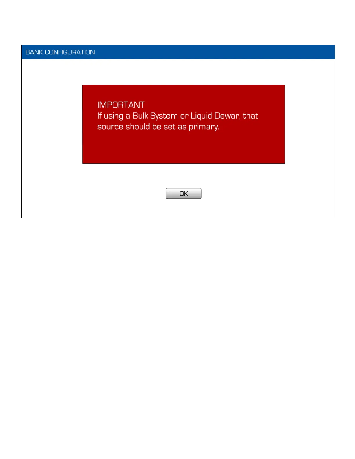setting. So, for example, the user selects LEFT BANK as primary, then selects Liquid Dewar or Bulk Cylinder as the gas