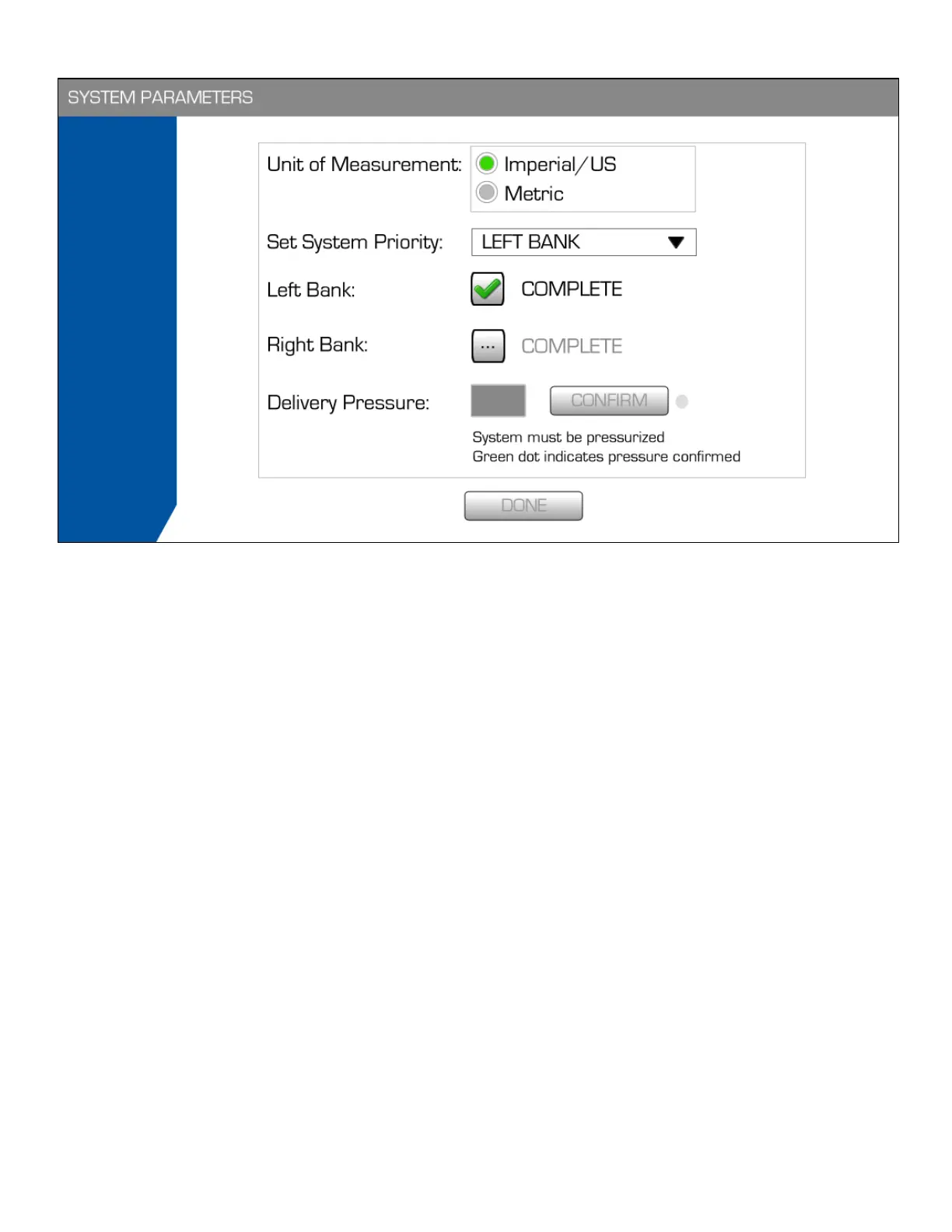 press CONFIRM to verify that the Delivery Pressure is correct: