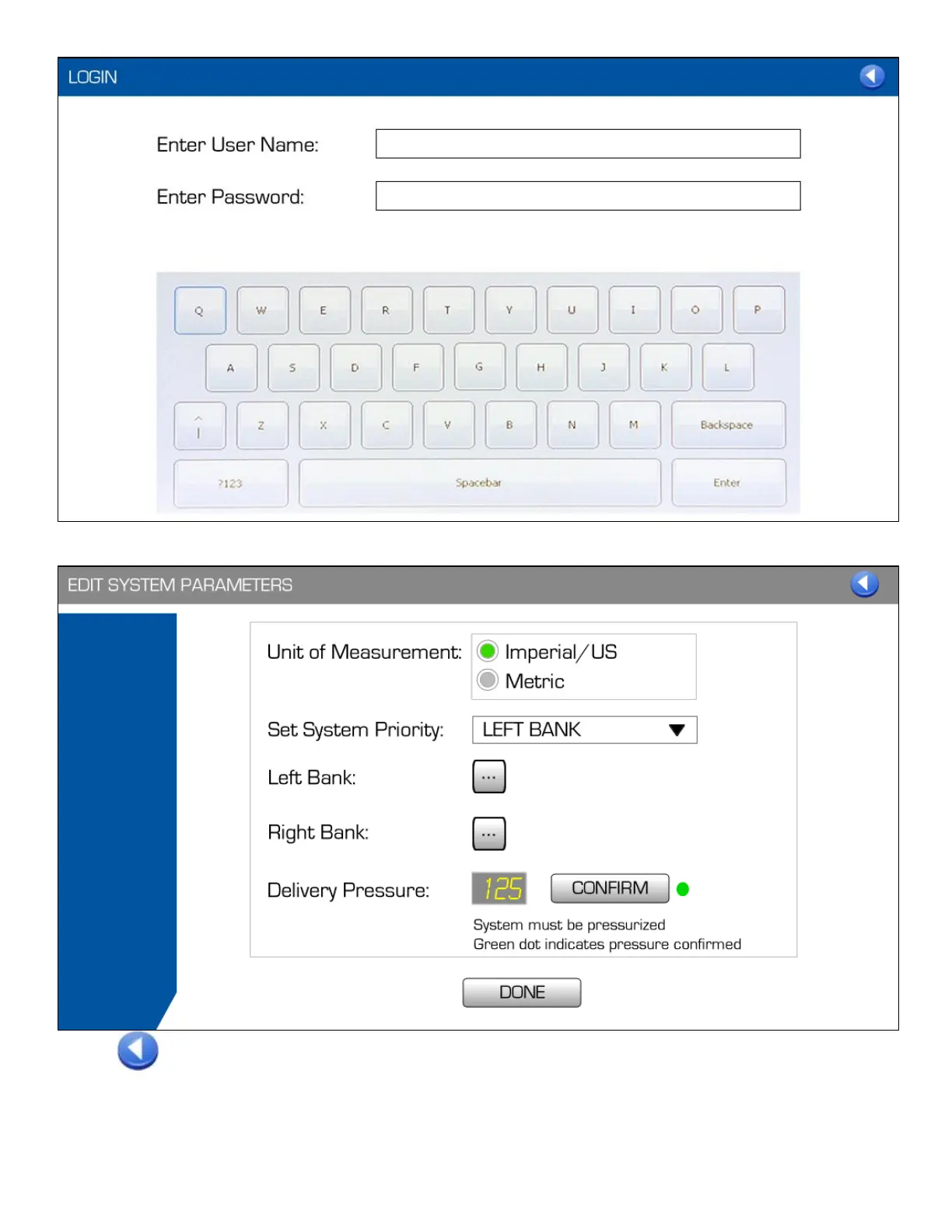 returns the user to the Operation Mode screen. Pressing either of the ellipsis buttons beside a bank edits the