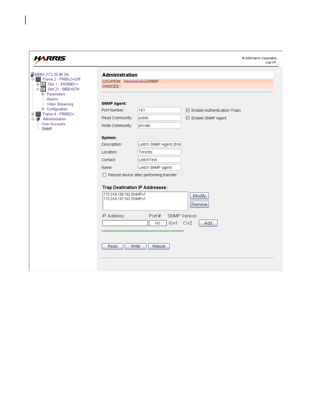 Figure 4-30 SNMP Administration Tab of 6800+ HTTP Control Interface