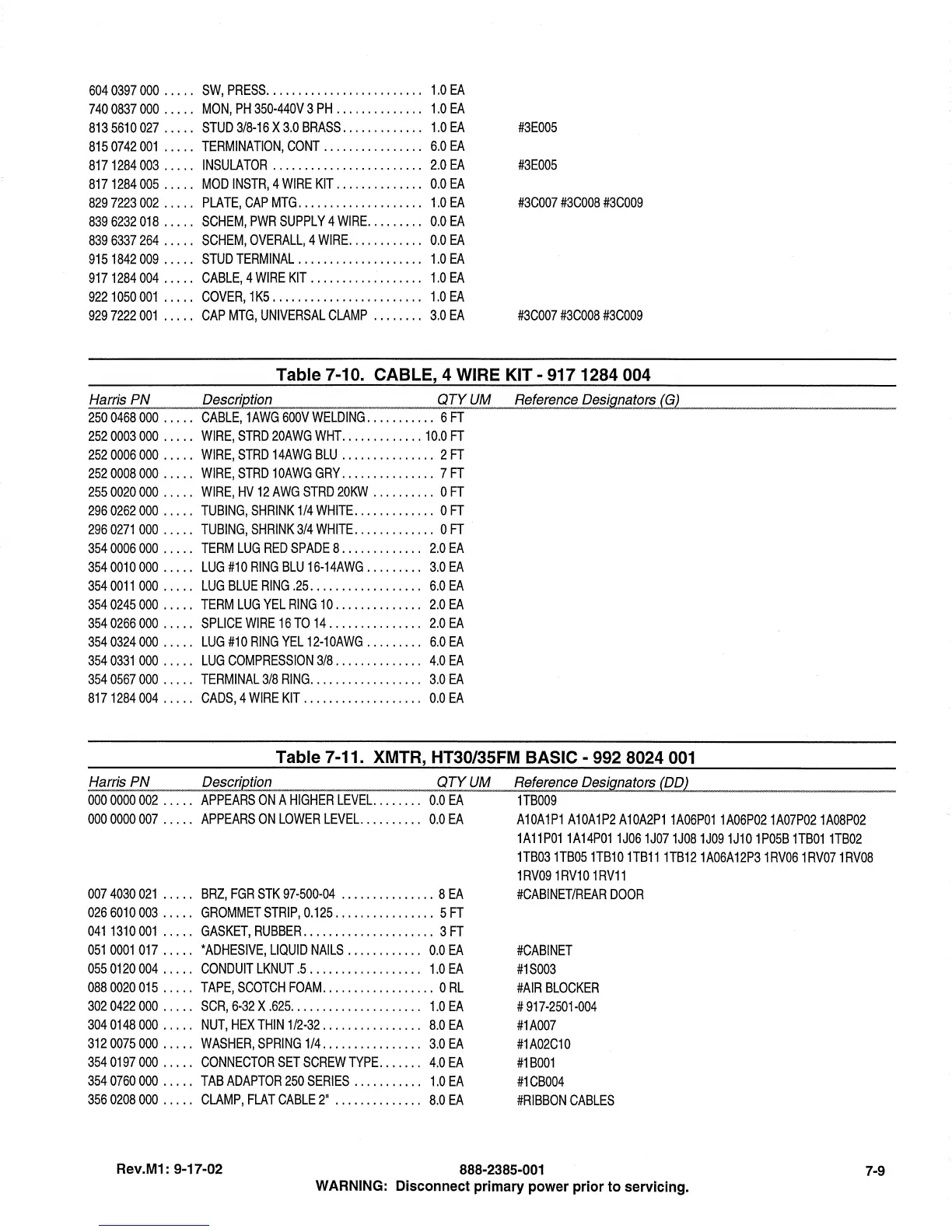 Table 7-10. CABLE, 4 WIRE KIT -