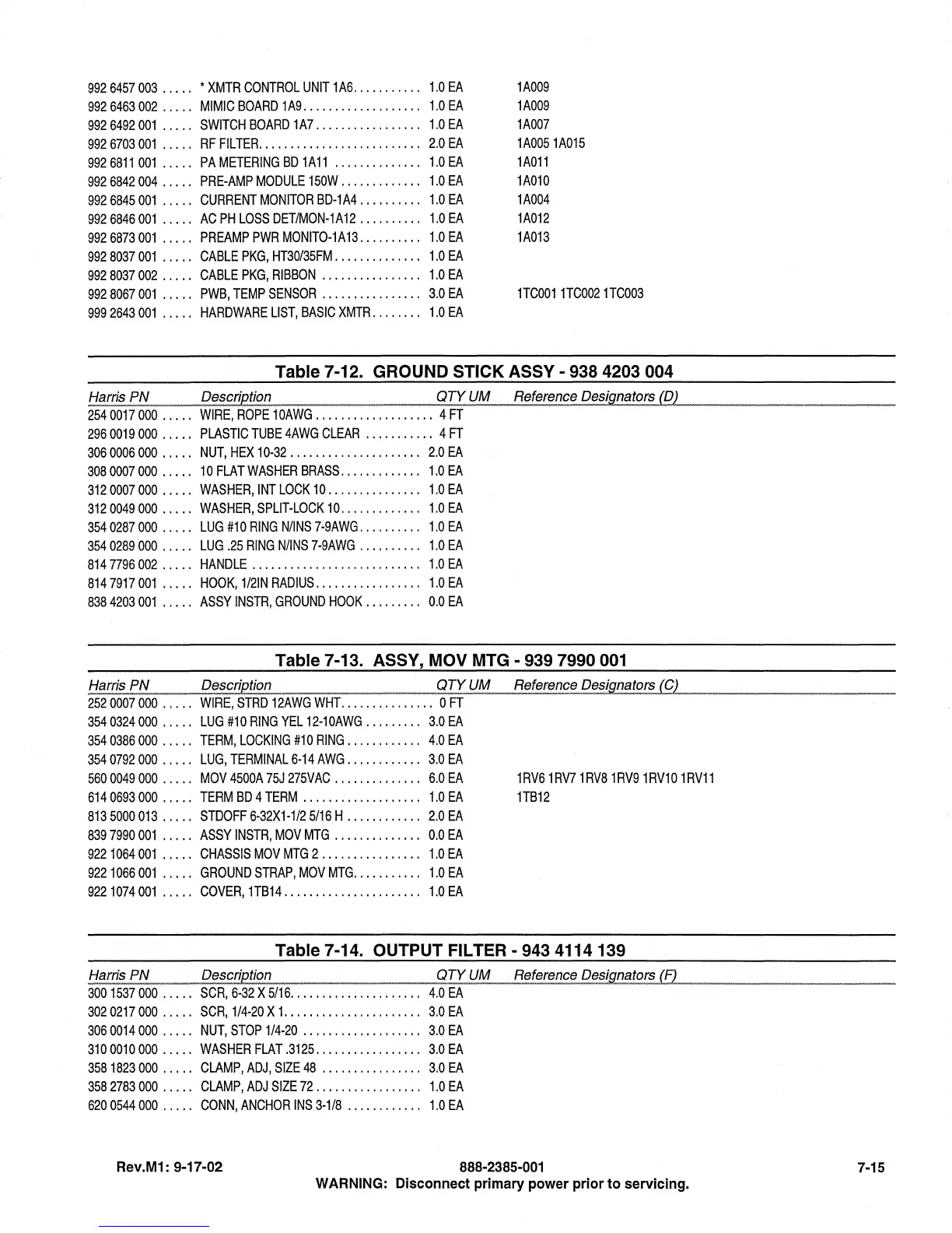 Table 7-12. GROUND STICK ASSY - 938 4203 004
