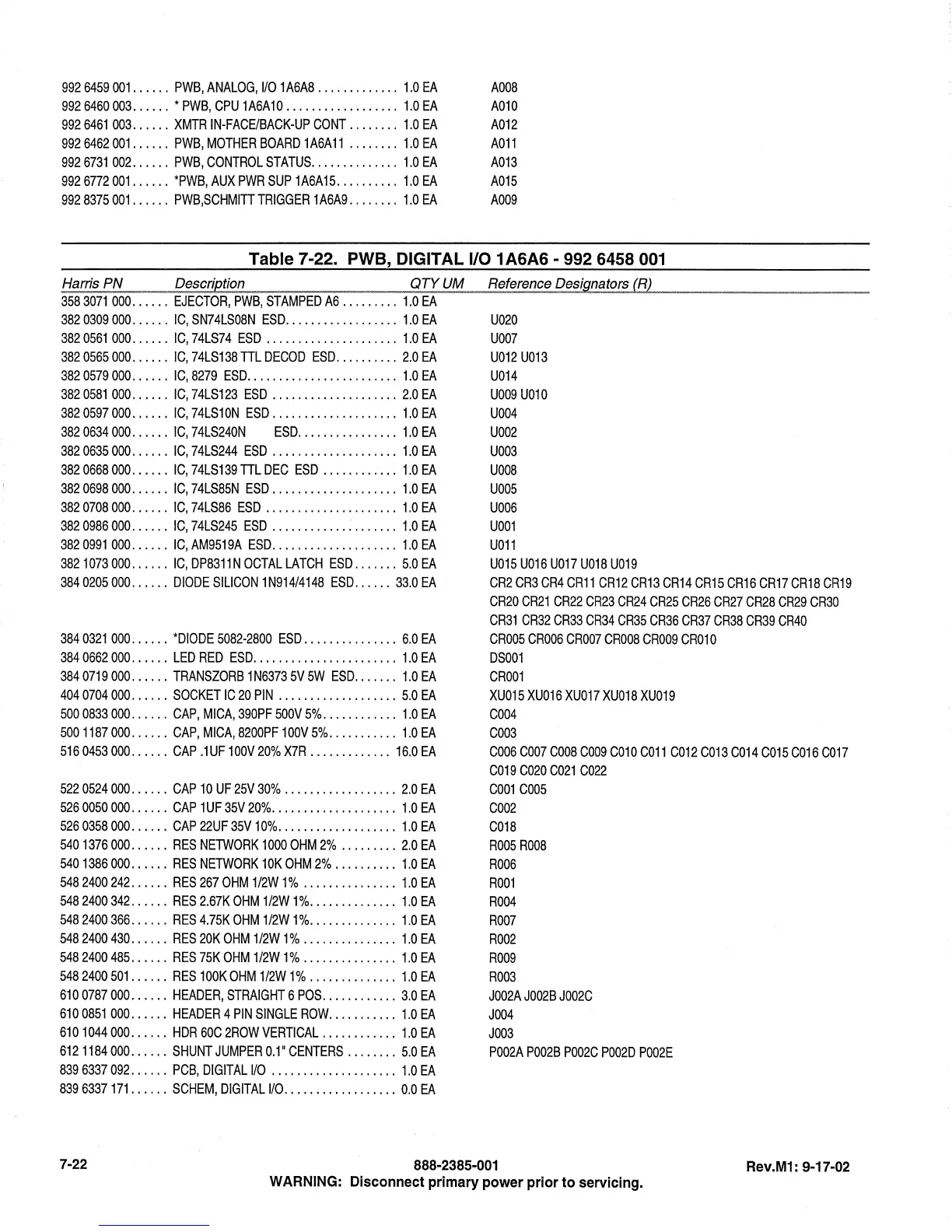 Table 7-22. PWB, DIGITAL