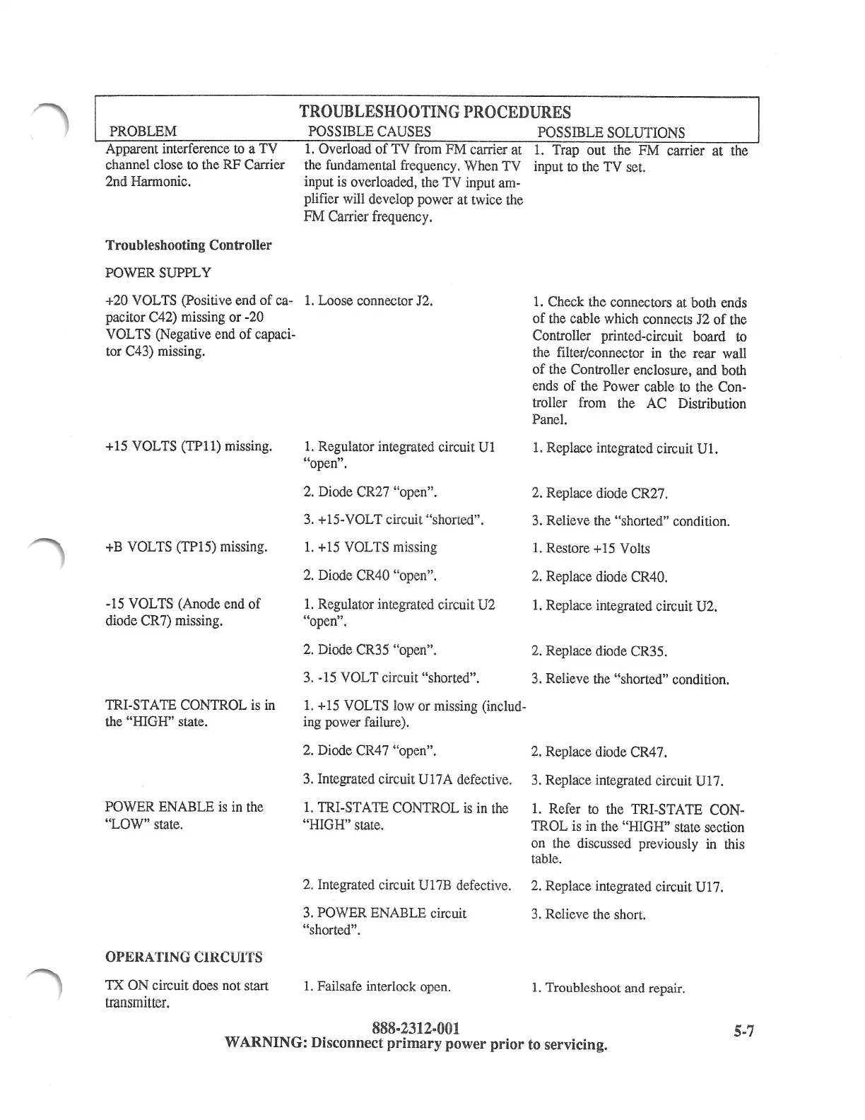 2. Diode CR47 "open". 2. Replace diode CR47.
