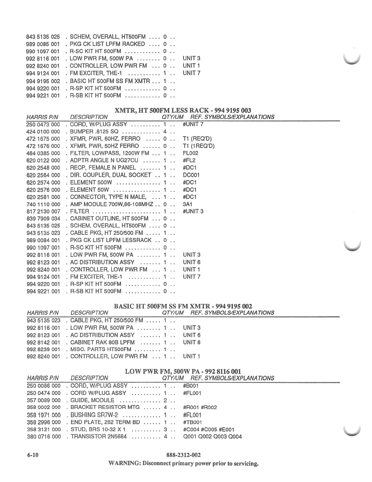 . MISC. PARTS HT500FM . . . . . . . . . 1