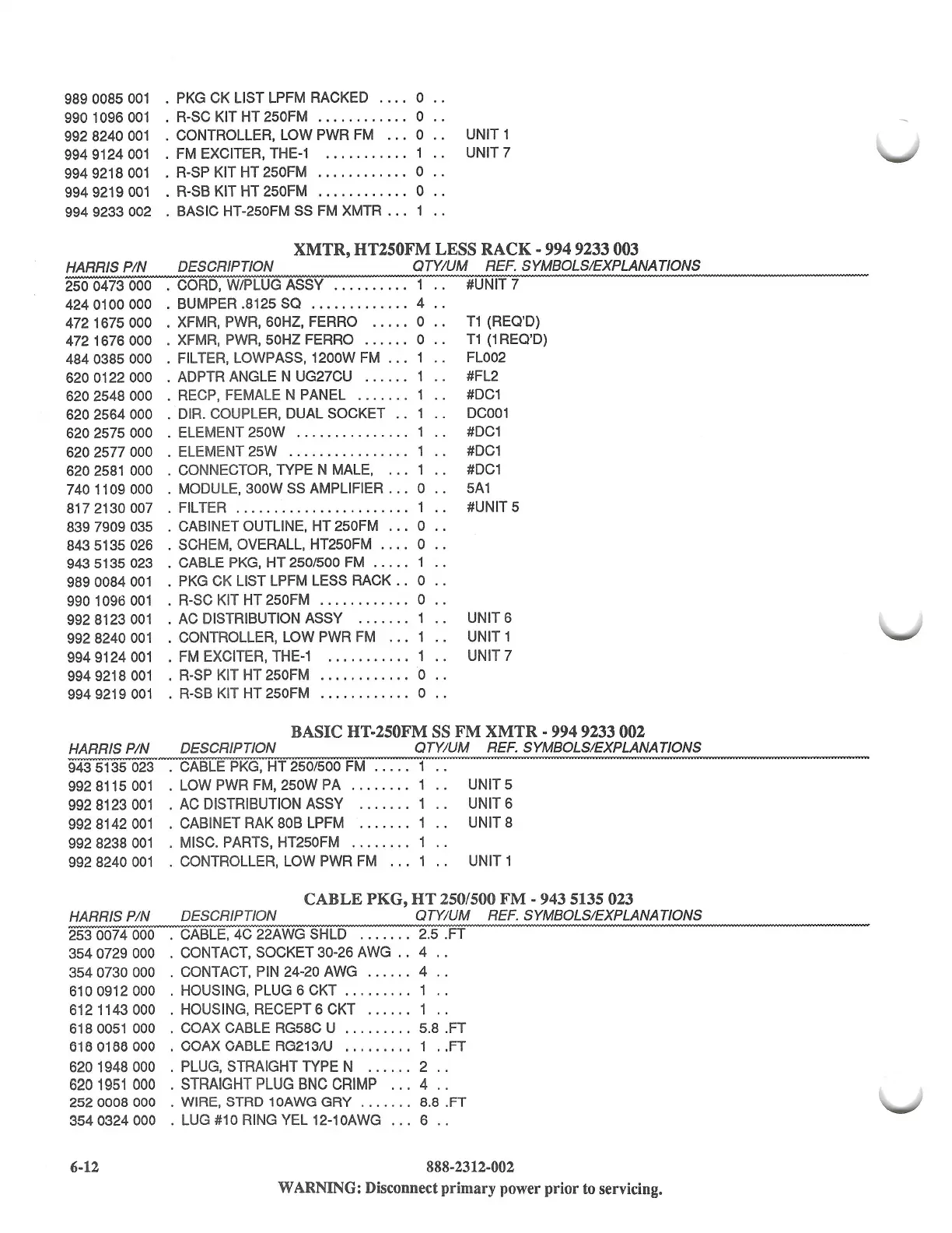 994 9233 002 . BASIC HT-250FM SS FM XMTR