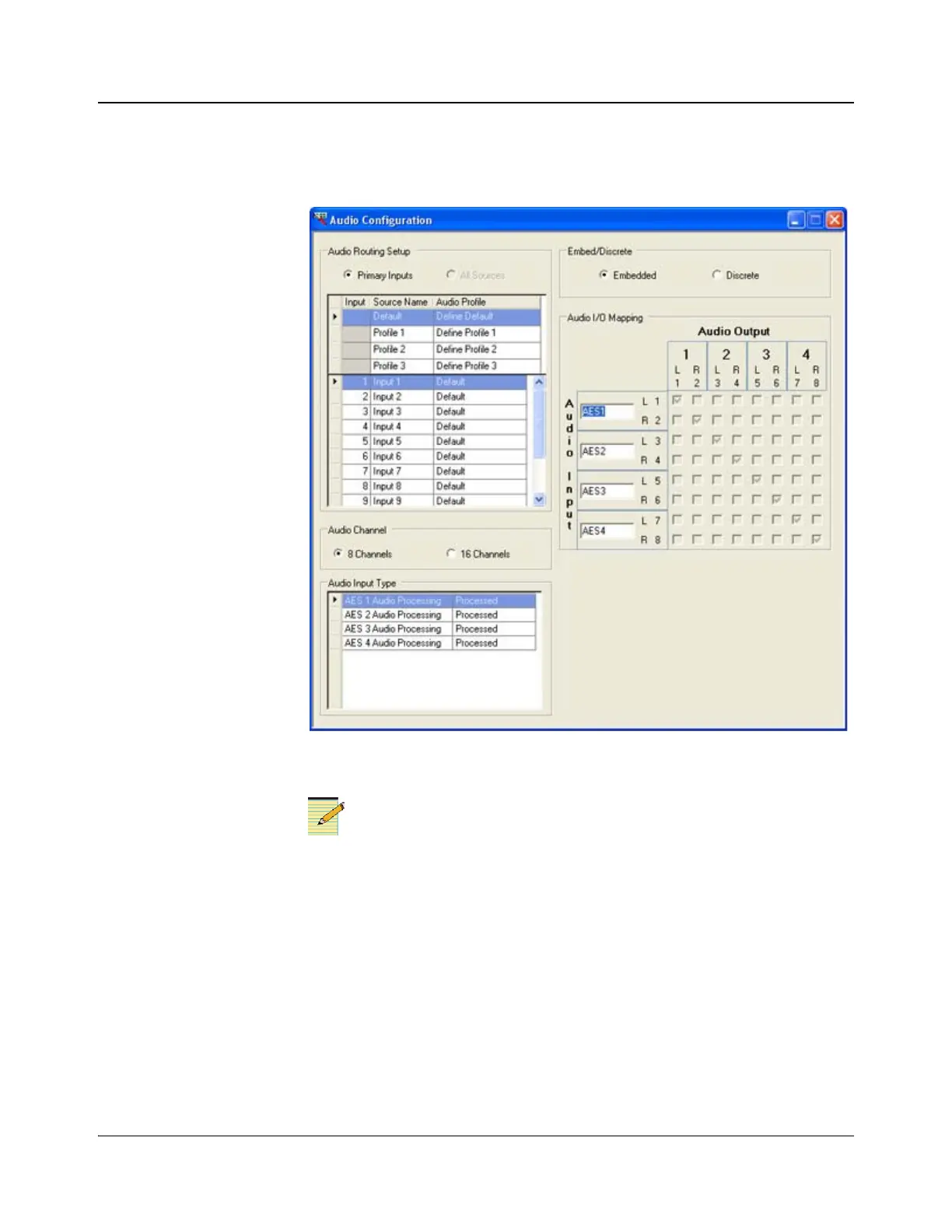 created. An audio profile is a set of audio input to output mappings, which can