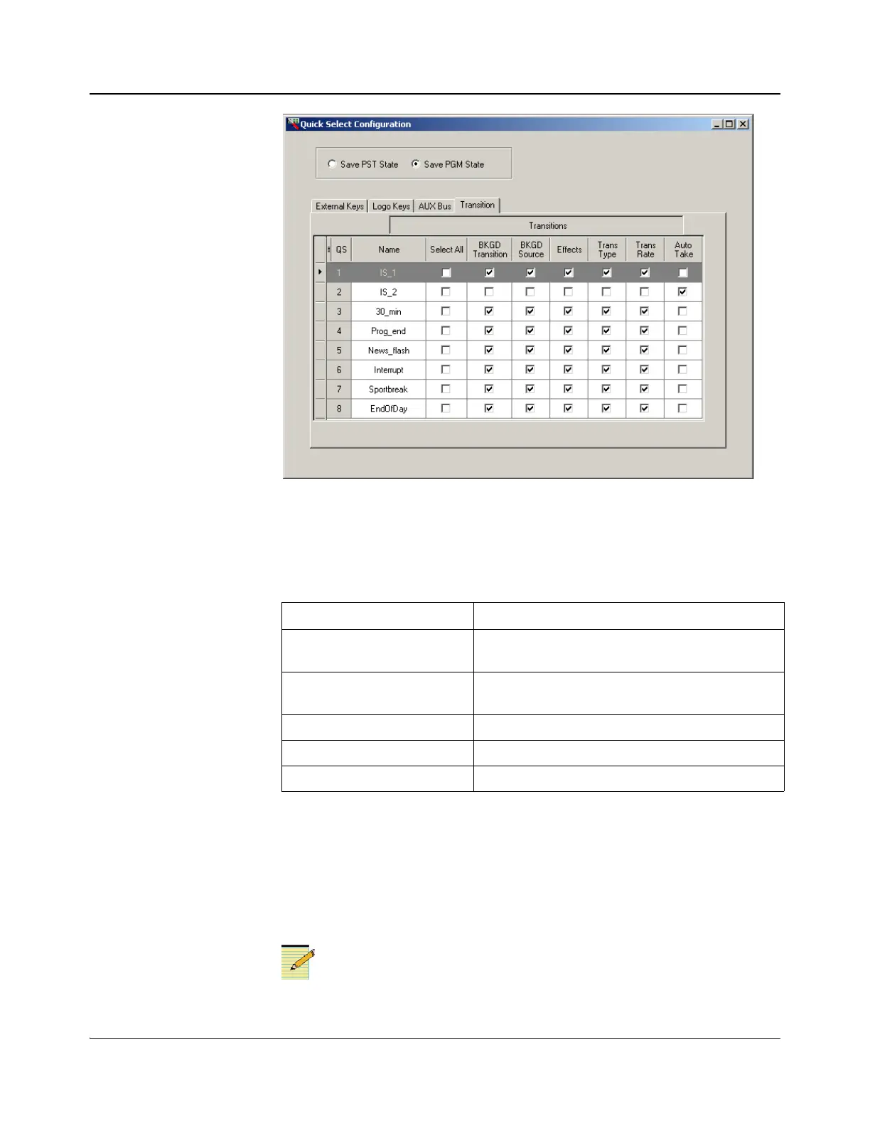 If Auto Take is selected, when the Quick Select is recalled to the PST, and a