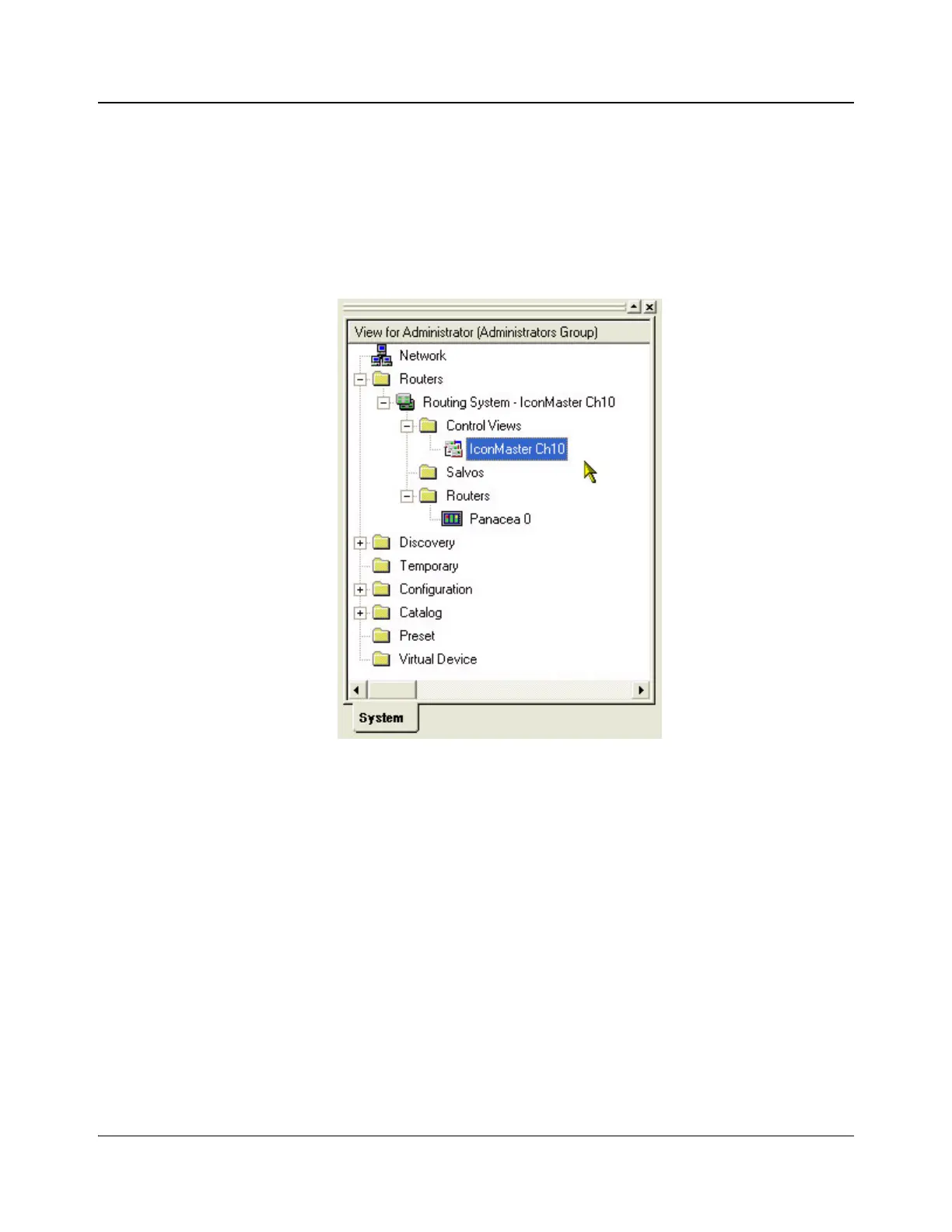 database entry under the Routers → Control Views tree.