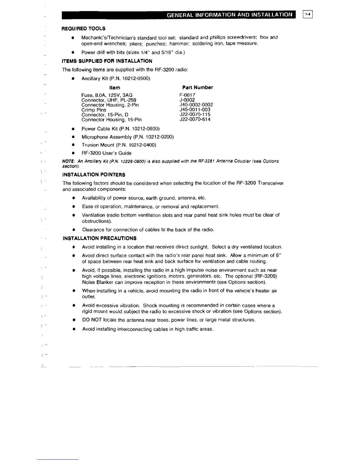 Harris RF-3200 - Installation Guidelines and Connections