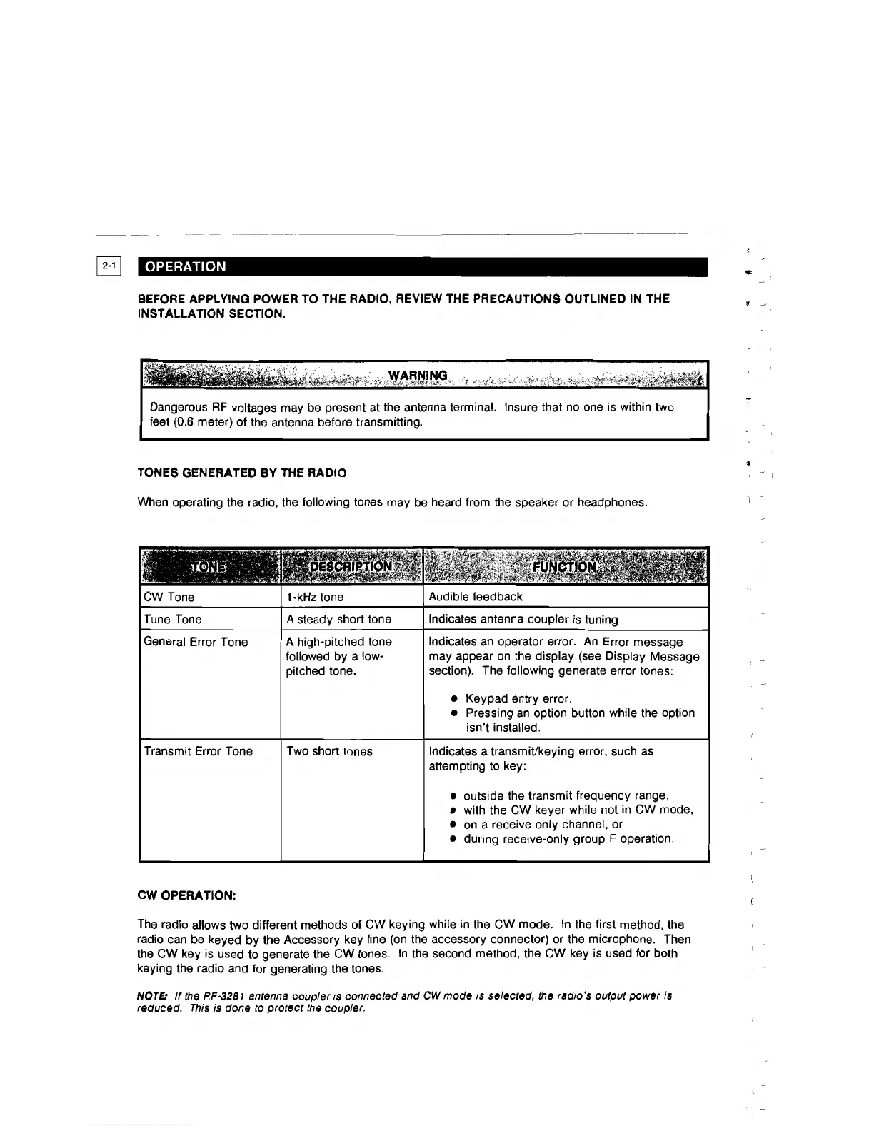 Harris RF-3200 - Operating Modes, Tones, and Controls
