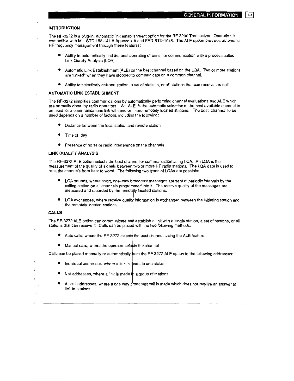 Harris RF-3200 - ALE System Introduction; ALE Overview and Link Quality Analysis; Call Types and Operation