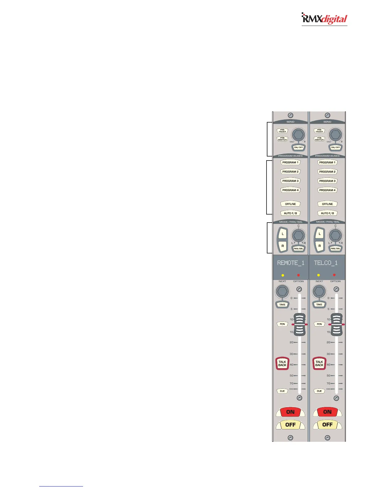 affected by the channel On/Off buttons. When unlit, the audio to the