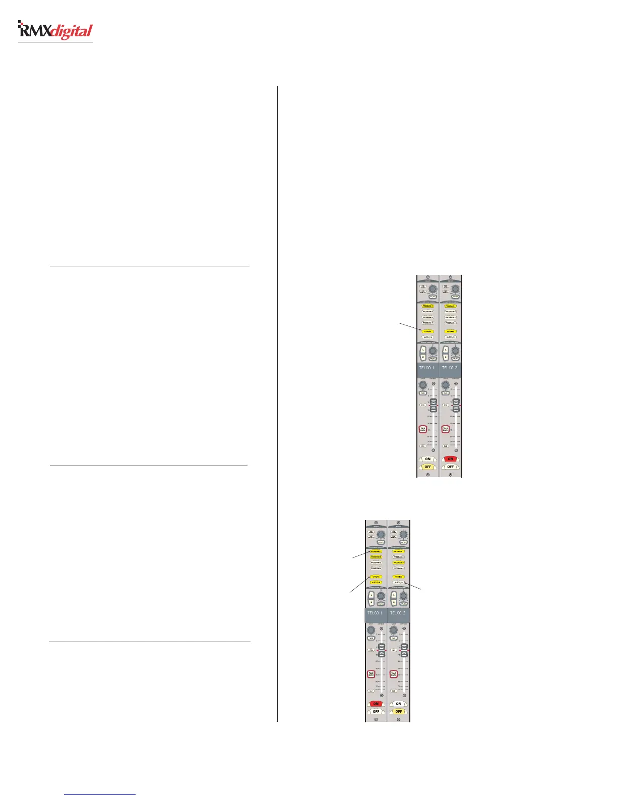 Fader during console setup. The Telco channels’
