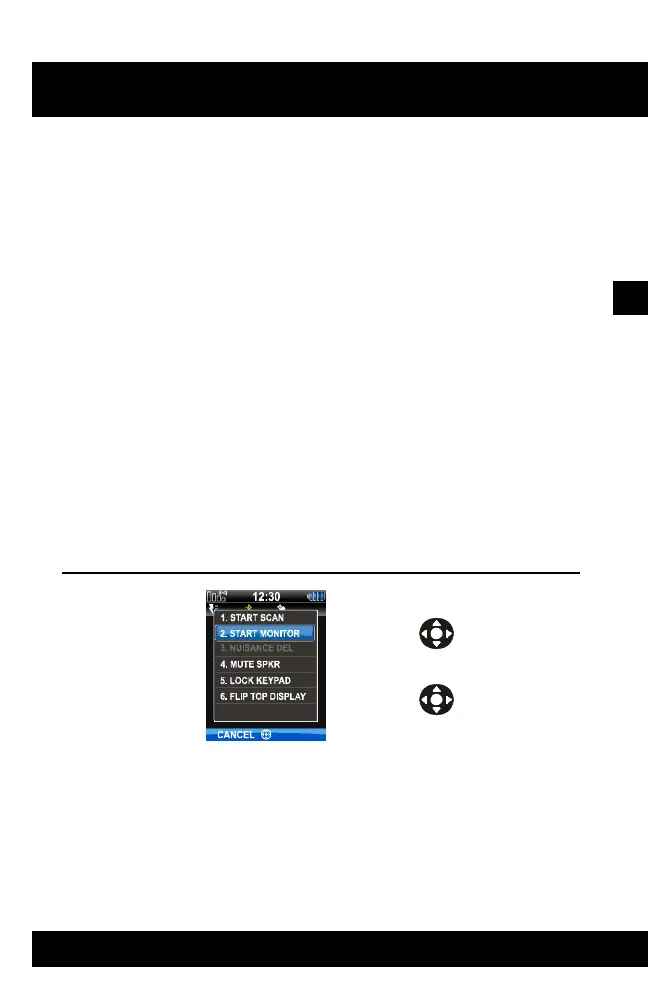 The monitor function allows you to temporarily turn off selected squelch to monitor