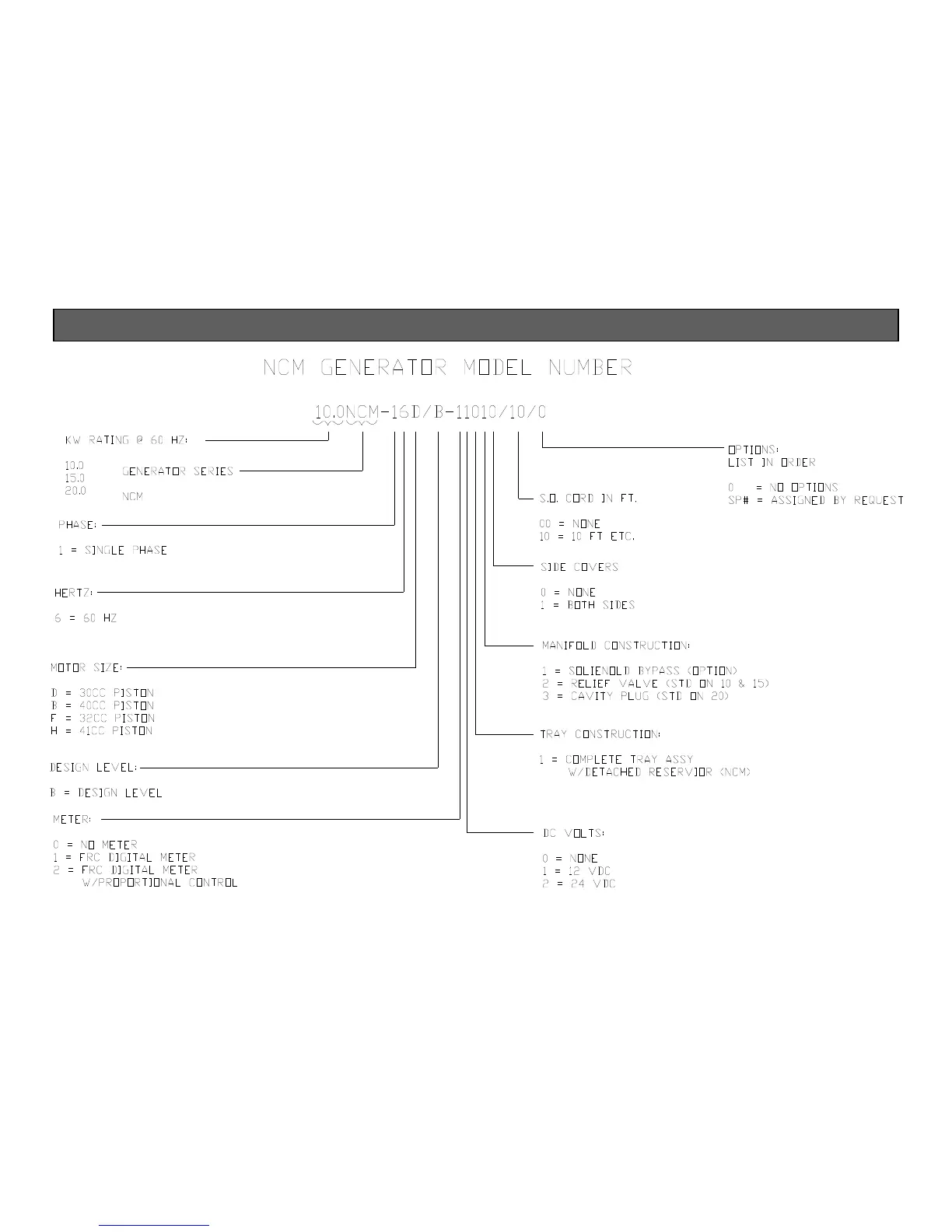 GENERATOR ORDERING CODE