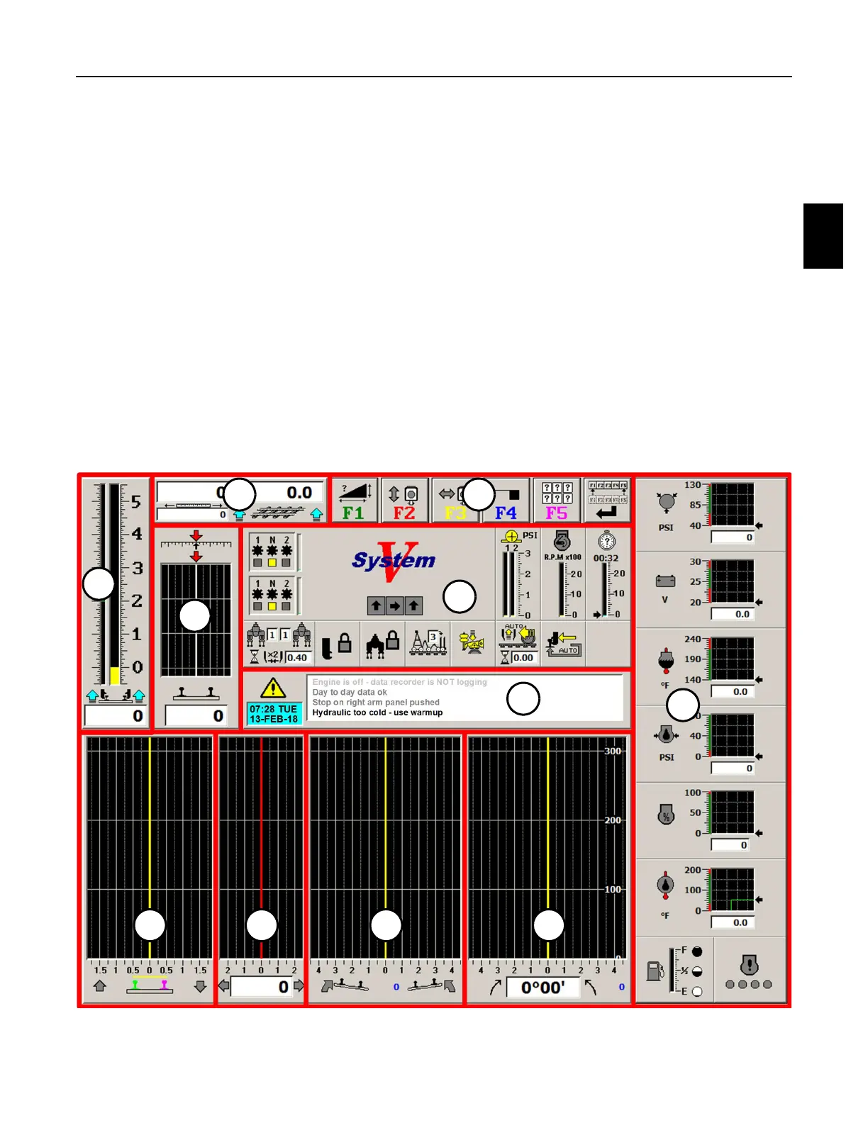 (1) Alarm Panel (7) Superelevation / Crosslevel Panel