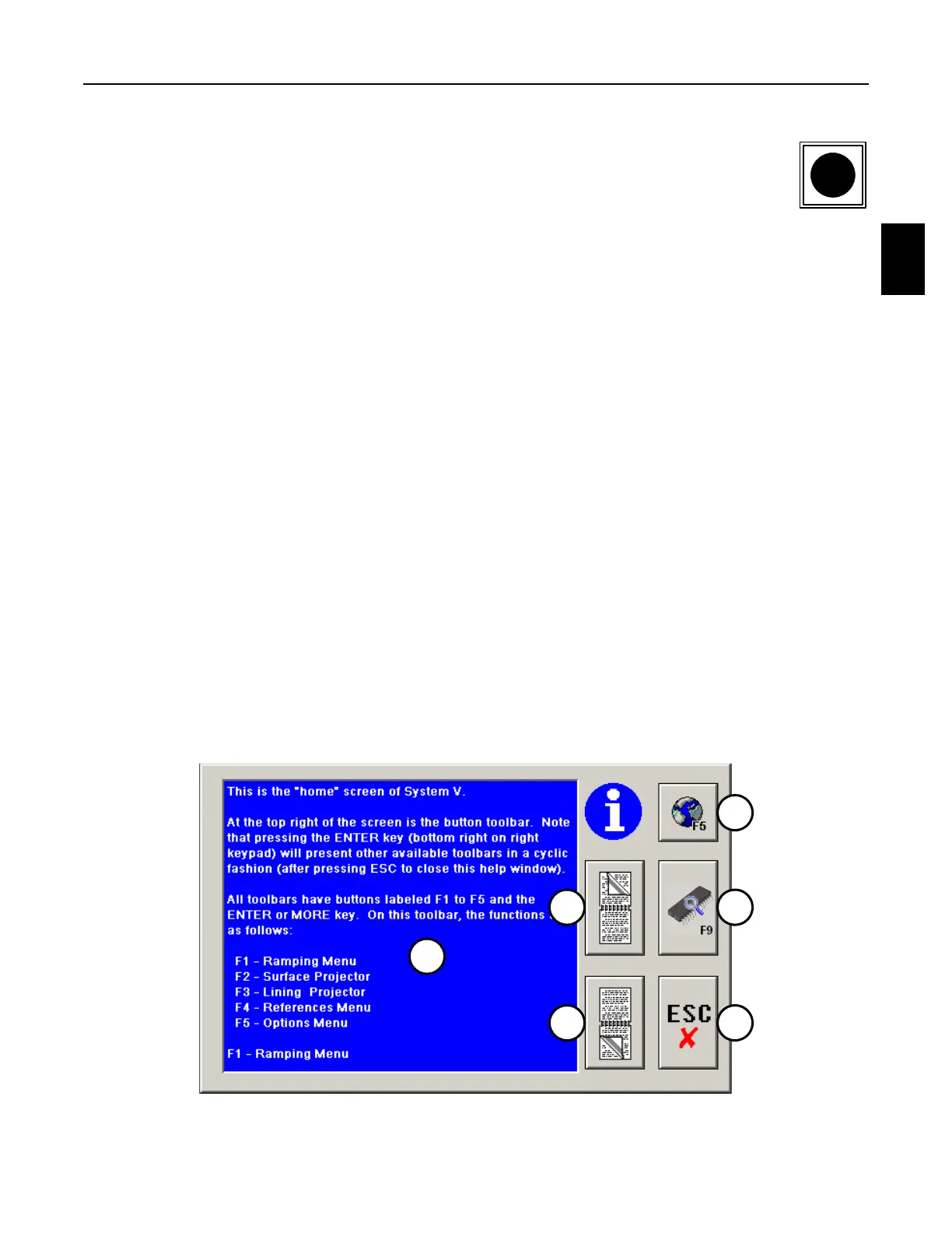 (6) Escape Button: Press the button or the Escape Key on the Right Operator Keypad or