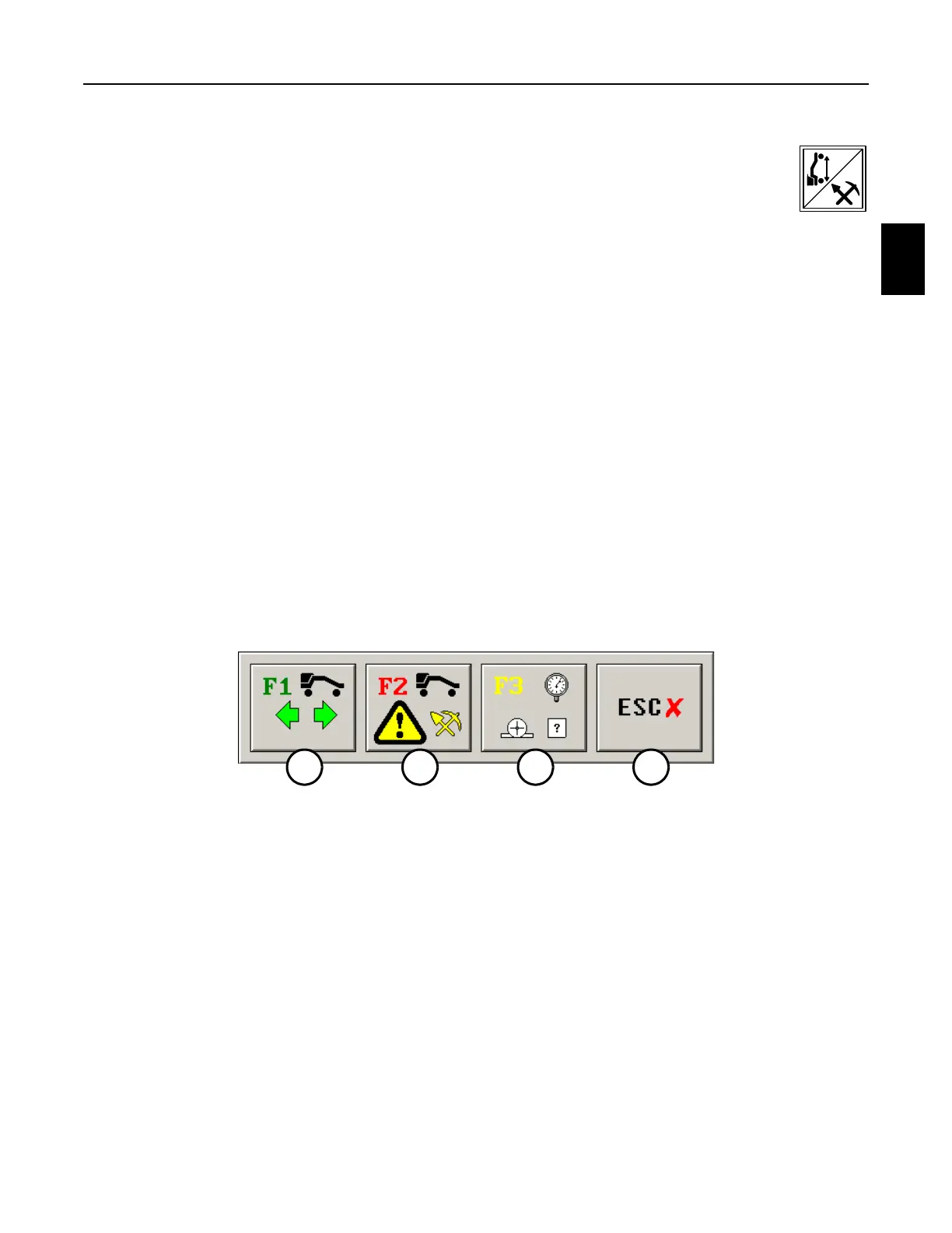 (2) F2 Work Select Button: Press the button or the F2 Key on the Right Operator Keypad