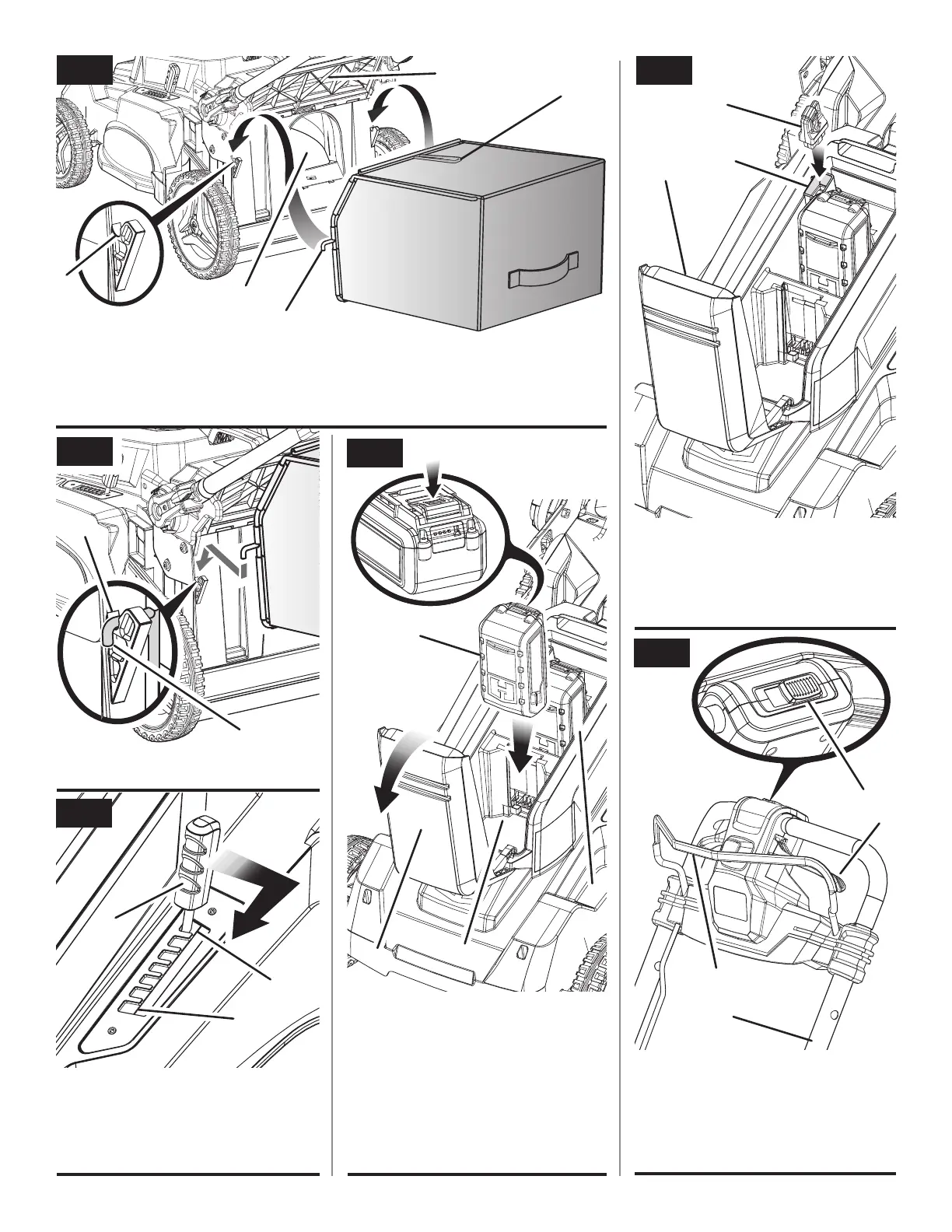 C - Rear discharge door (couvercle d’éjection arrière, puerta de descarga posterior)