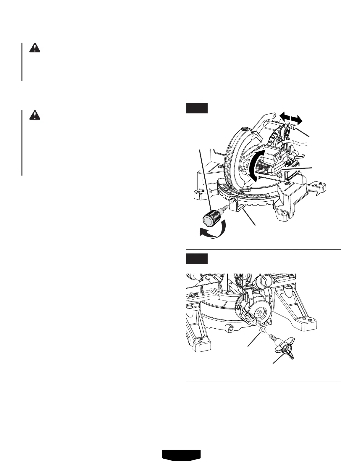Para destrabar y levantar el brazo de la sierra: