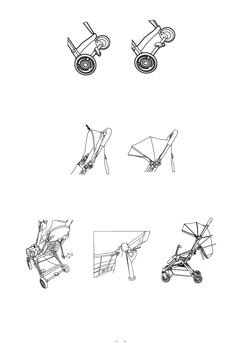 van de kap (canopy rod) in de richting van de handgreep. Om de kap uit te klappen,
