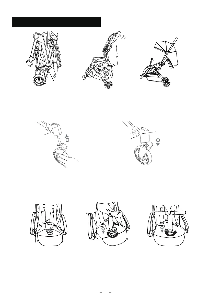 1. Раскладывание колес (см. F1): снимите фиксирующий зажим (folding latch),