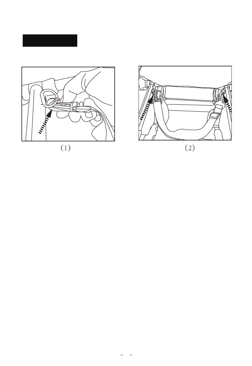 Anbringelse af bæreremmen: Åbn karabinhagen (se billede 1), og fastgør