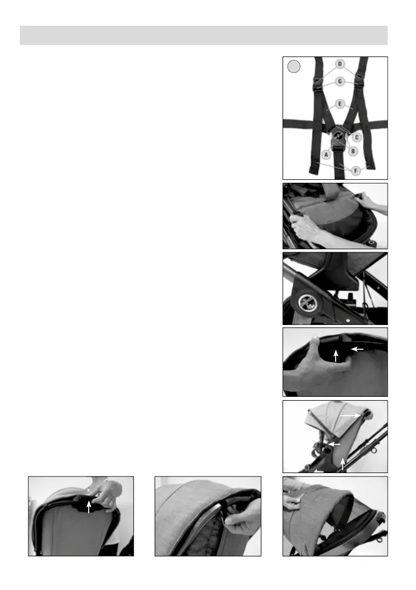 ременів, нахиливши пряжку G і потягнувши за ленту E.