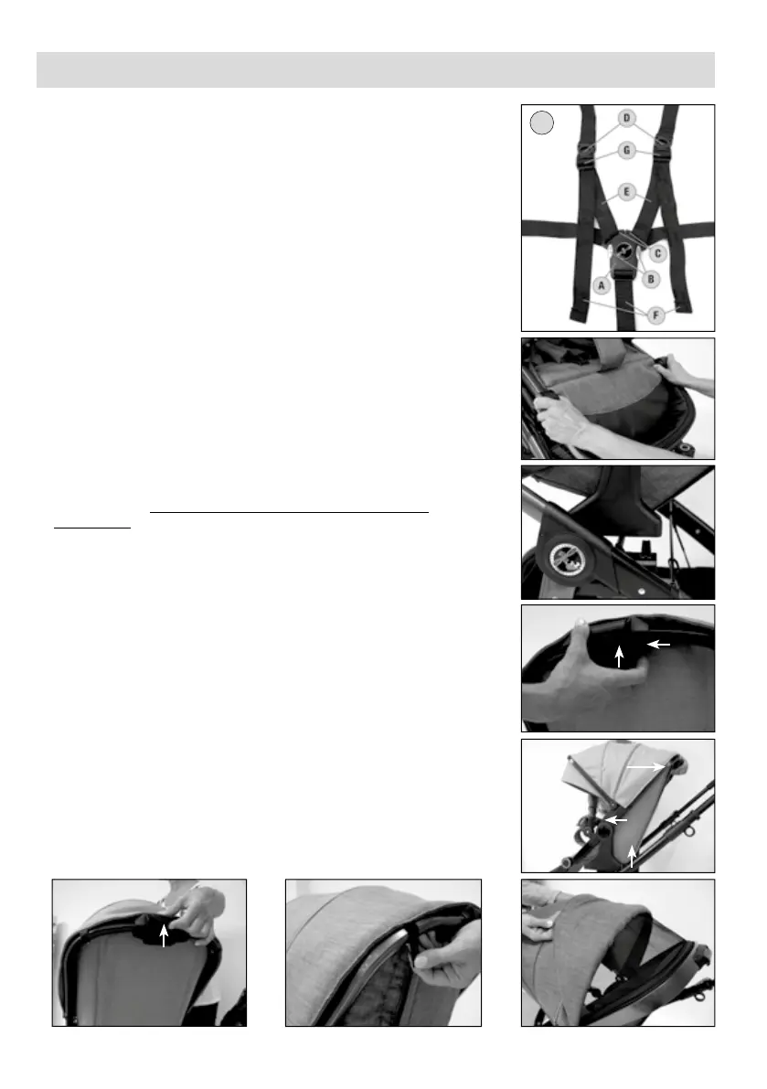 axel- och höftbnden genom att fälla upp snabblåsspännet G och
