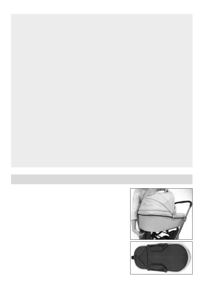Warnung! – Der Kopf des Kindes sollte niemals in der Falttasche niedriger als sein Körper sein.