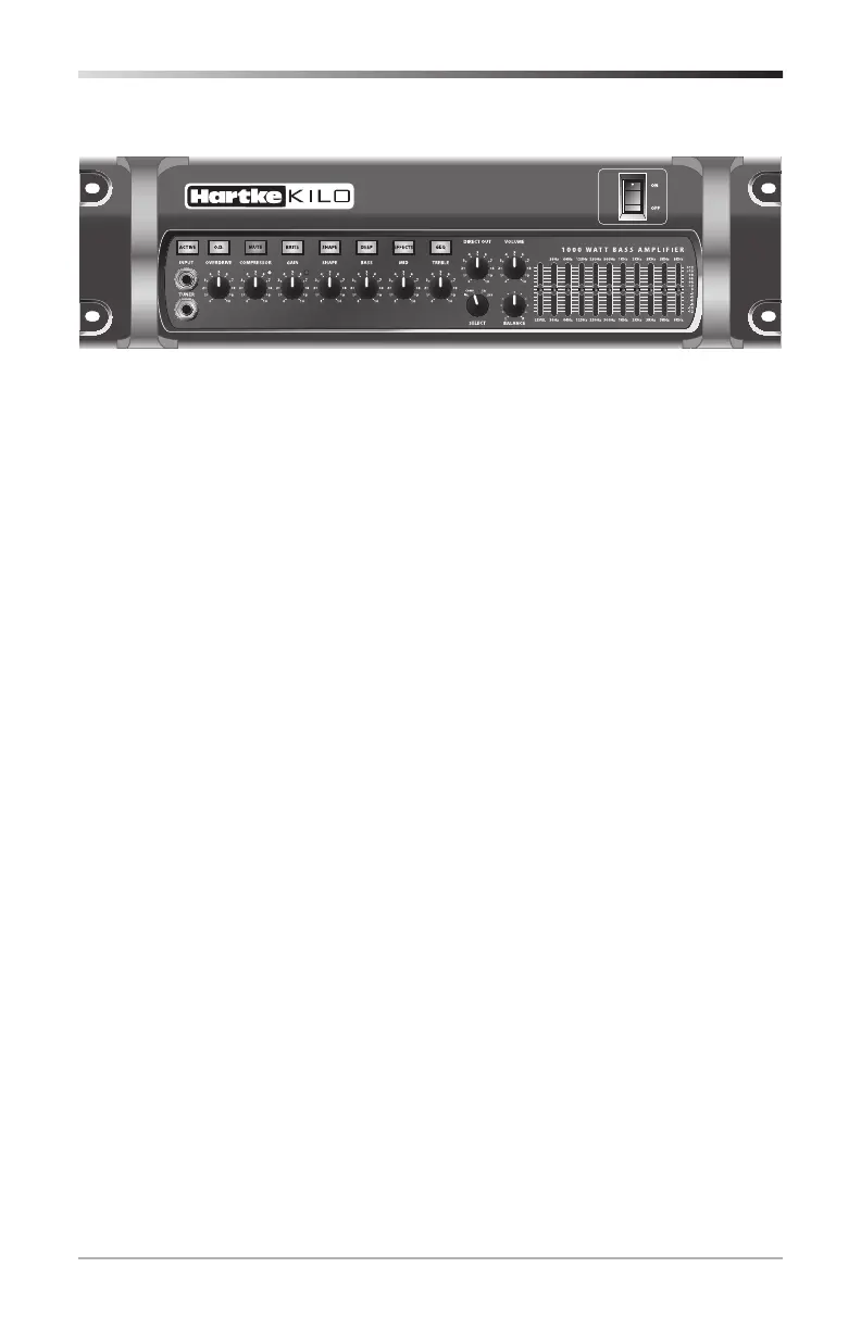The Hartke Kilo bass amplier oers classic tone, enhanced exibility, and an abun-