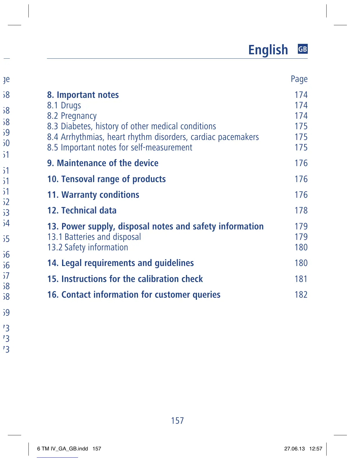 8.5 Important notes for self-measurement 175