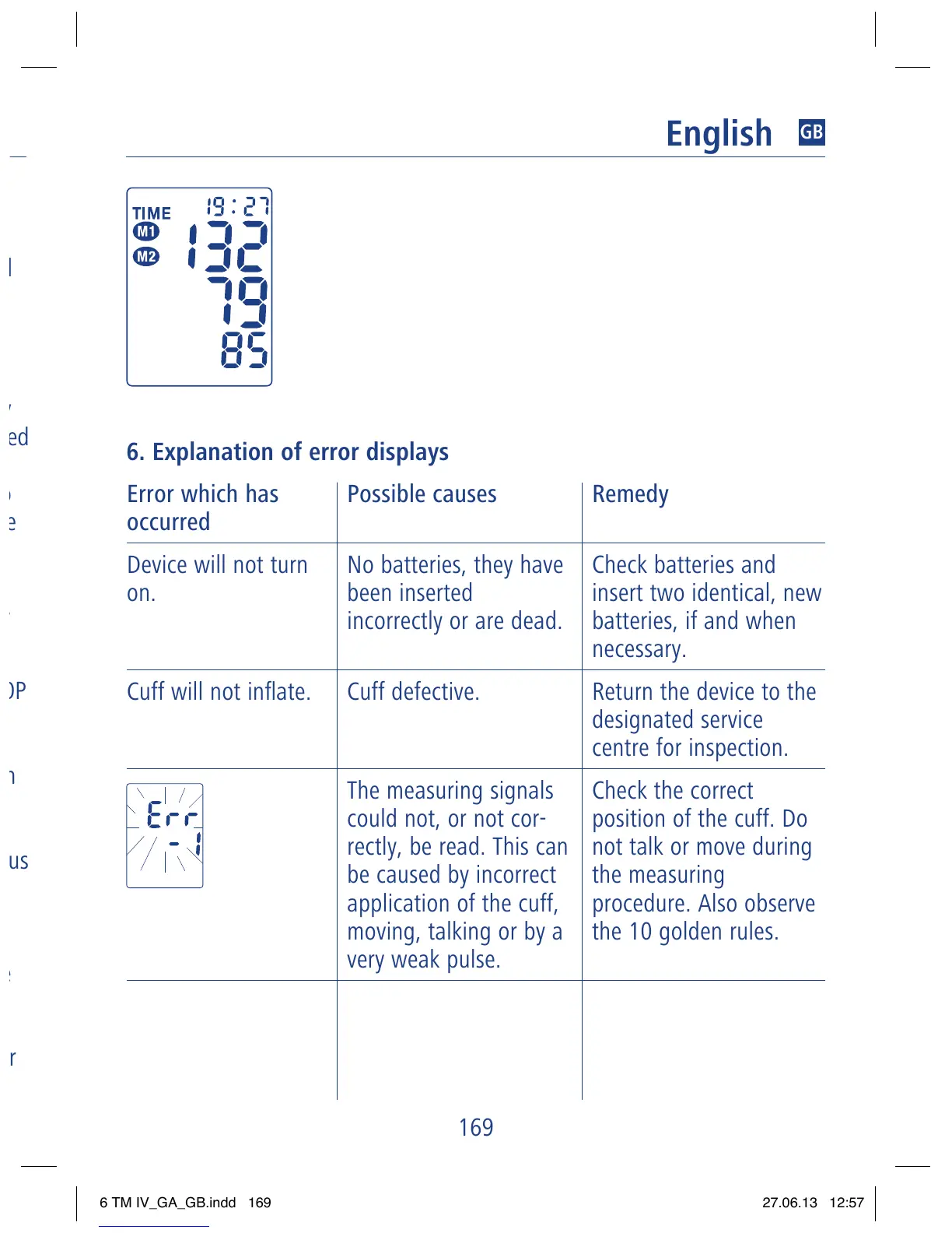Hartmann TENSOVAL MOBILE - 6. Explanation of error displays
