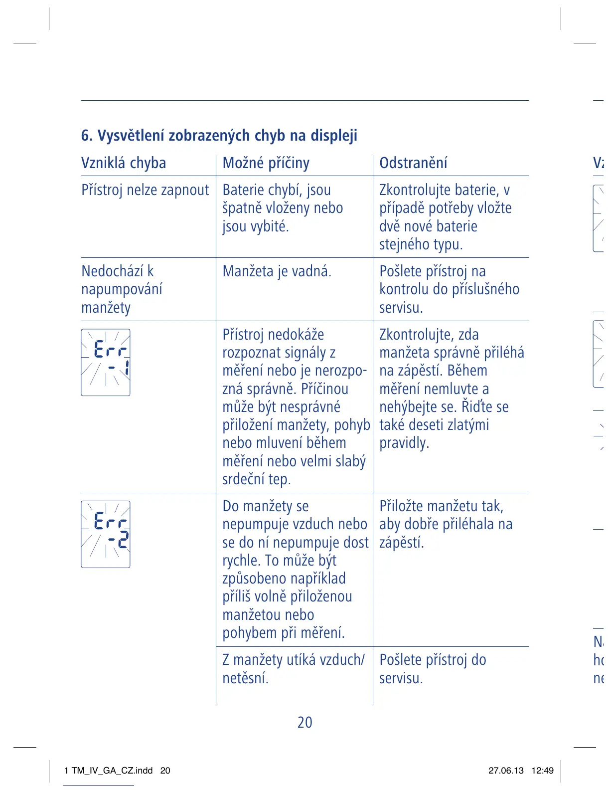 6. Vysvětlení zobrazených chyb na displeji