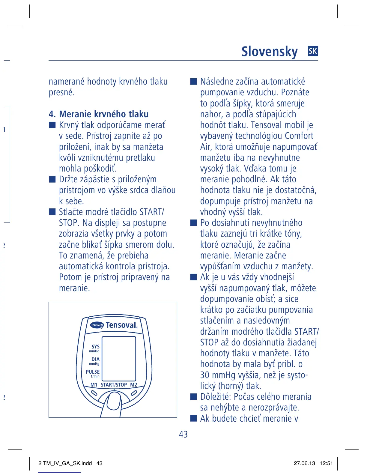 Stlačte modré tlačidlo START/