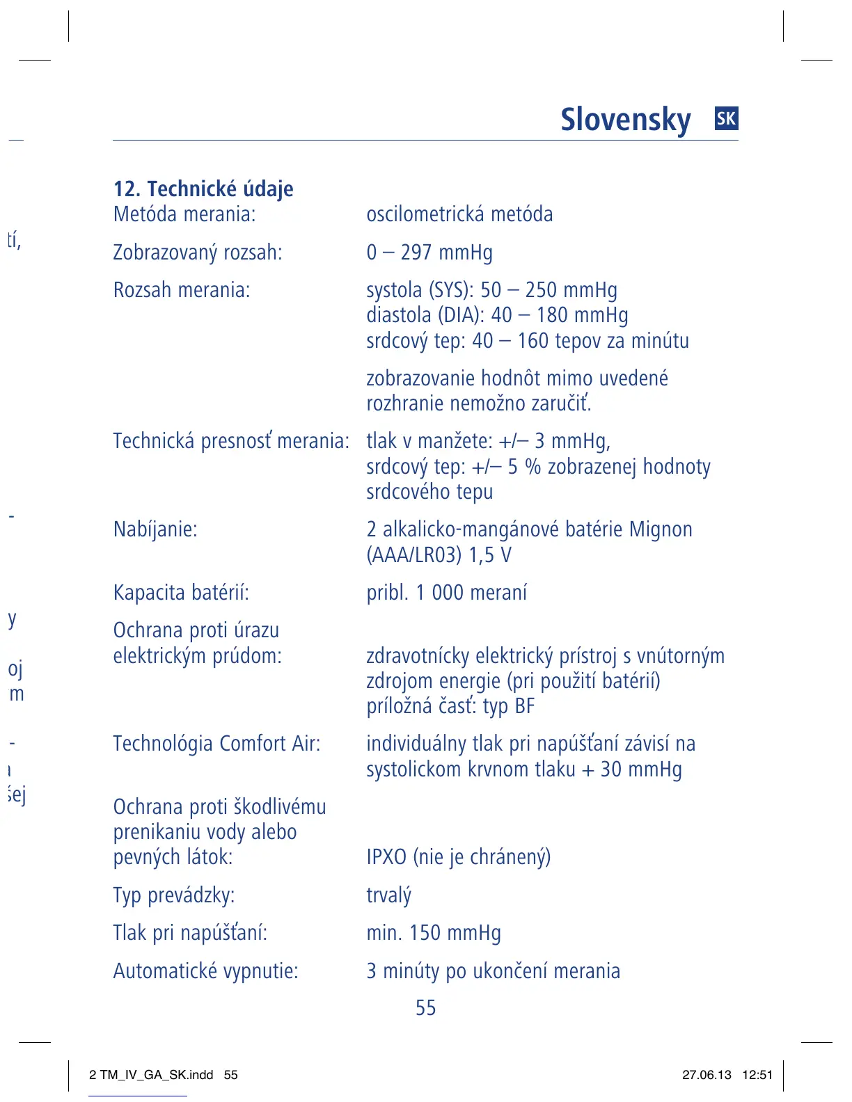 Technická presnosť merania: tlak v manžete: +/– 3 mmHg,