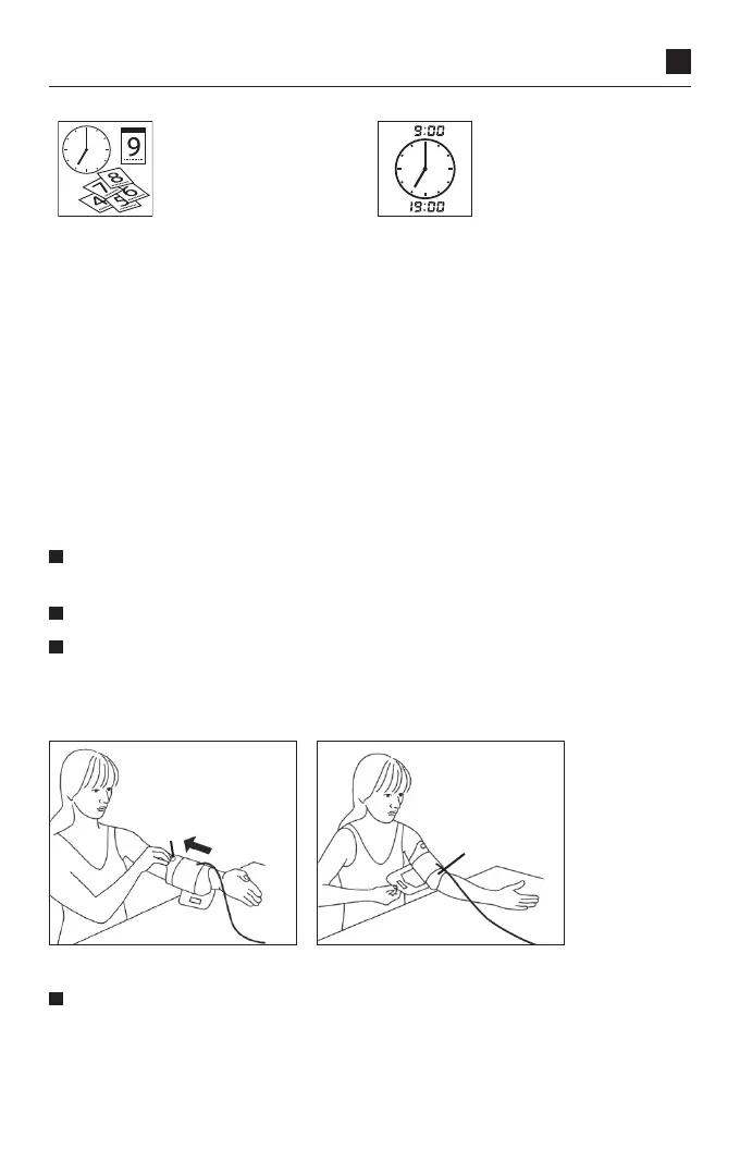 The blood pressure must be measured on a bare upper arm. If the cuff is com-