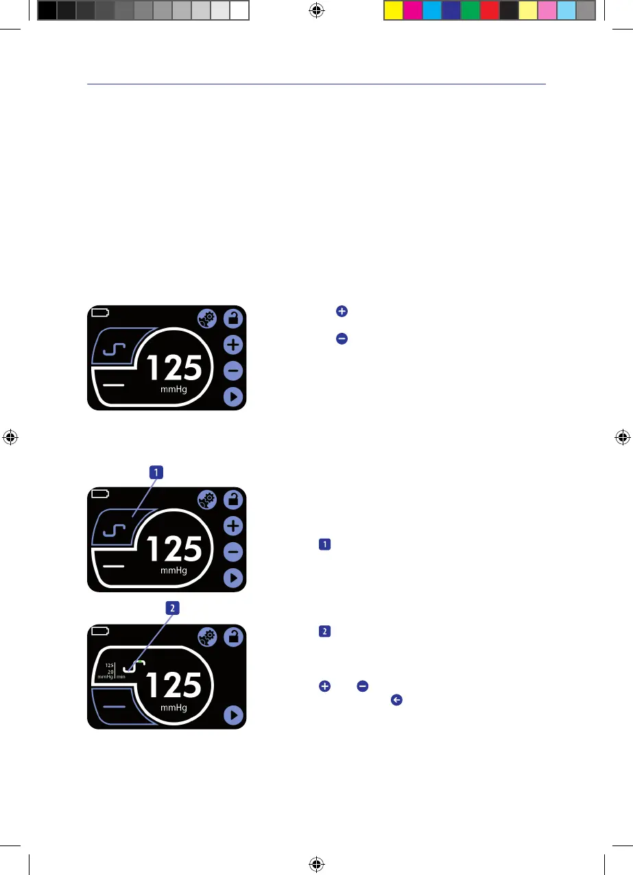 The factory setting for intermittent mode is 125mmHg for 5minutes and