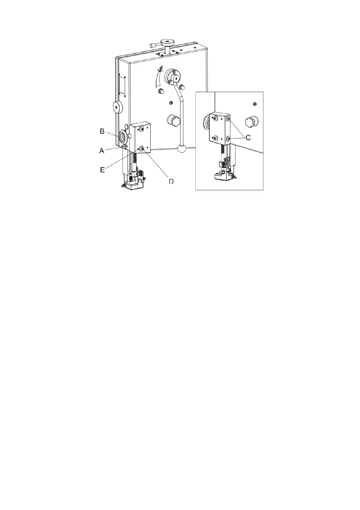 the guide post is raised), slightly loosen the four locking screws (C and D).