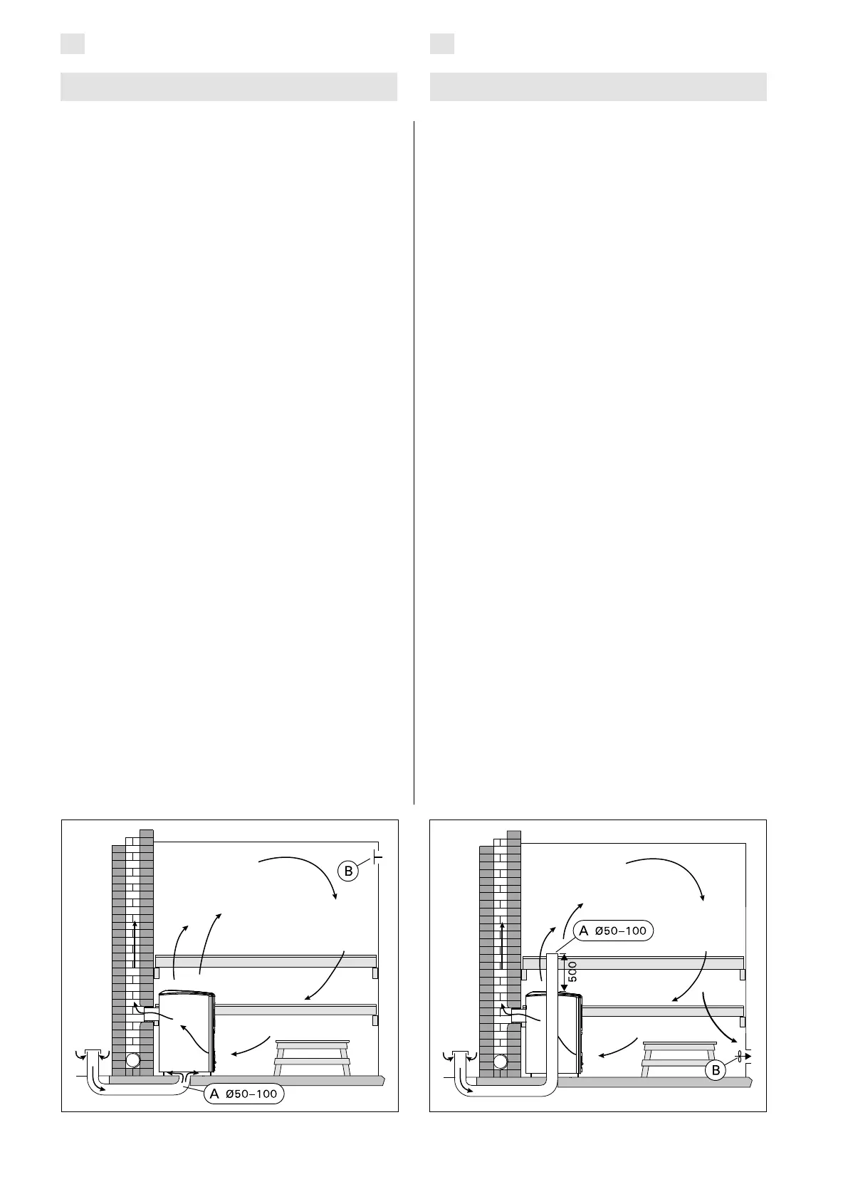 The fresh air inlet must be approx. 500 mm