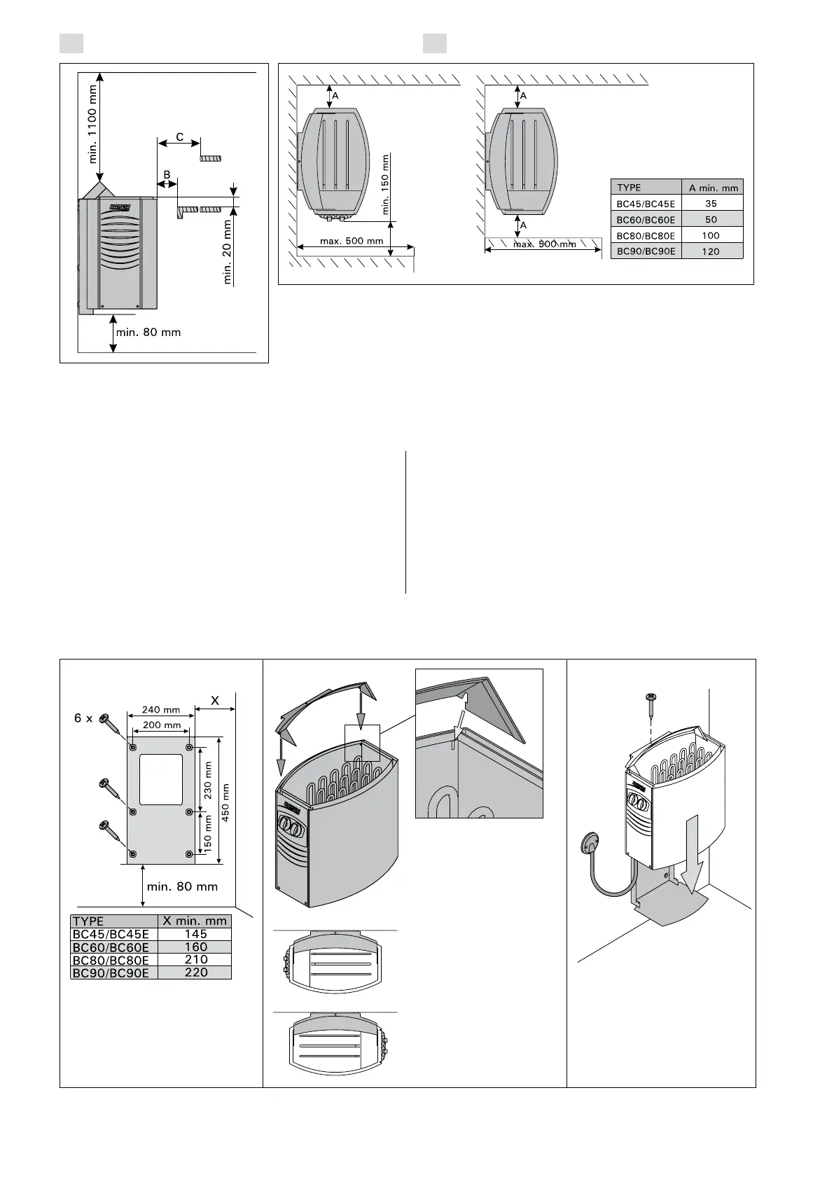 Abbildung 5. Sicherheitsmindestabstände des Saunaofens