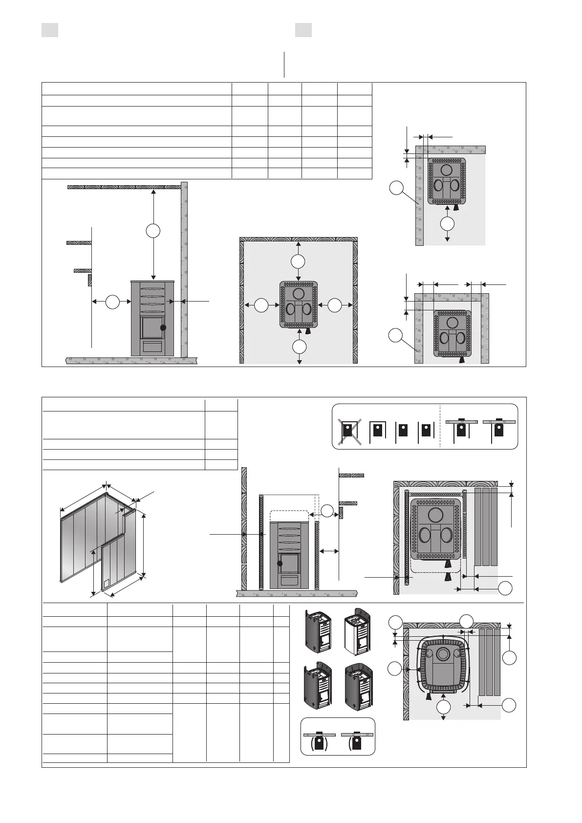100 mm between the stove and walls for the