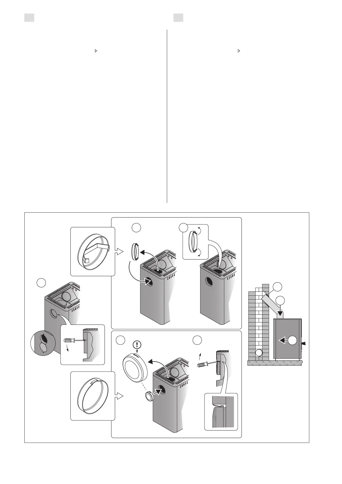 Abbildung 10. Anschluss des Ofens an einen gemauerten Rauchfang über die obere Anschlussöffnung (alle