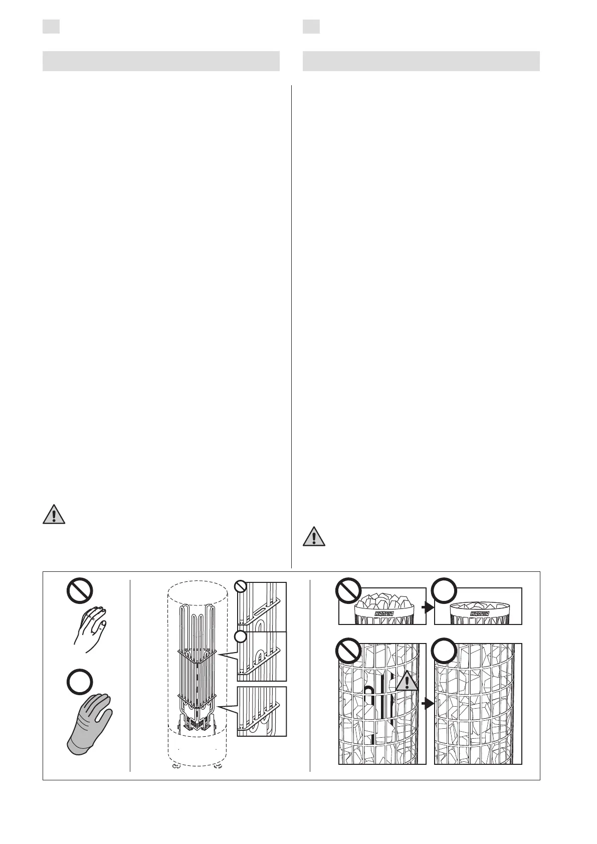 • Älä tee kivistä kekoa kiukaan päälle.