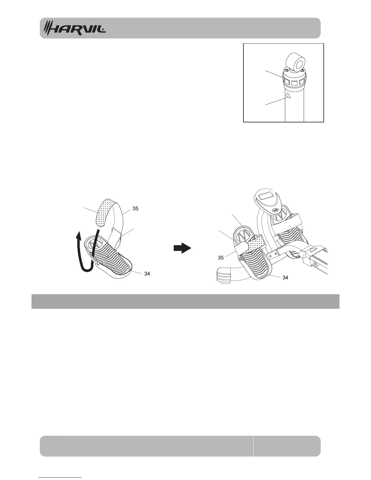 upper position in the PEDAL(34) as shown in illustration 1 below. Run the PEDAL STRAP(35) through the