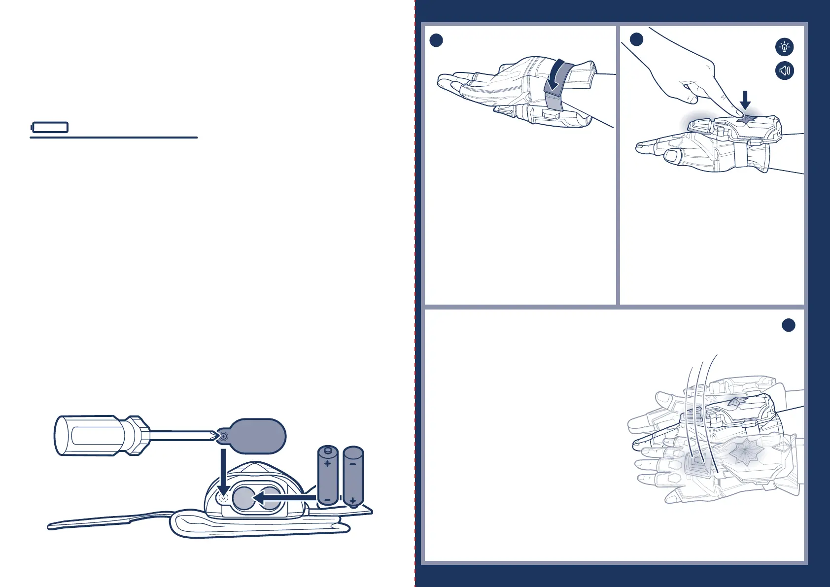 Remplacer par des piles 2 x 1,5 V “AAA” ou LR03. Piles de démonstration incluses.