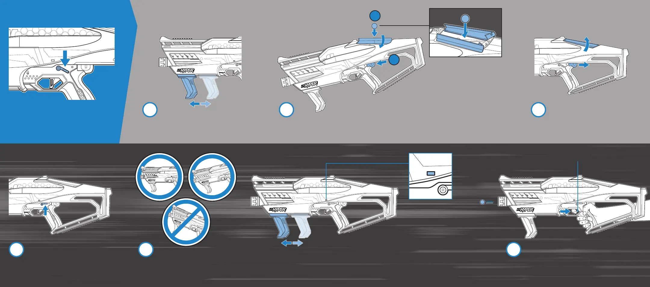 the way forward. Ready indicator will appear on side of blaster. Blaster is primed when ready indicator is visible.