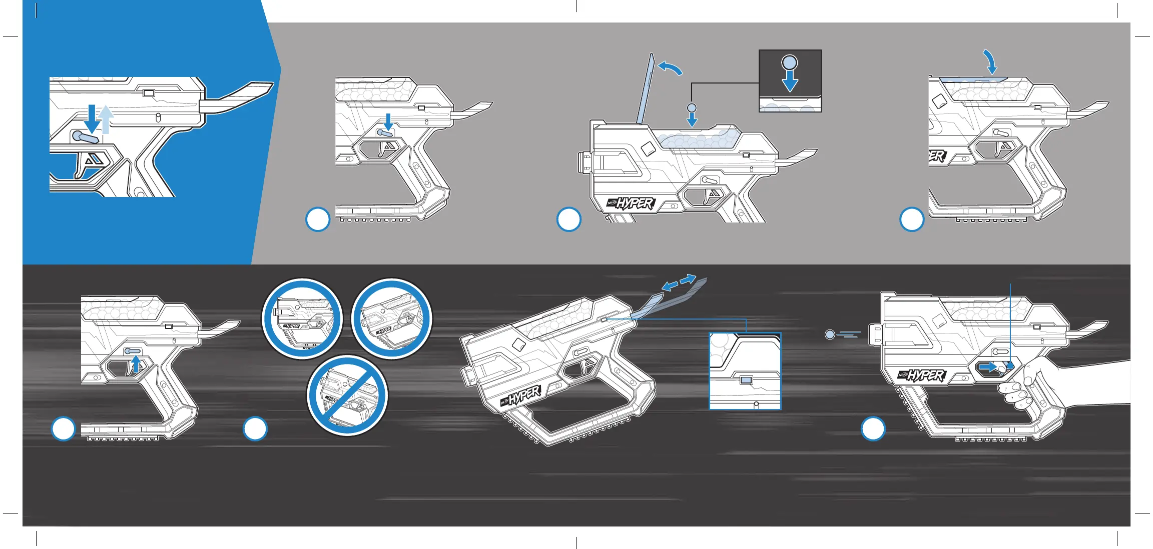 VERS L’AVANT. L’indicateur d’amorçage apparaîtra sur le côté du blaster. Le blaster est bien amorcé quand l’indicateur d’amorçage est visible.